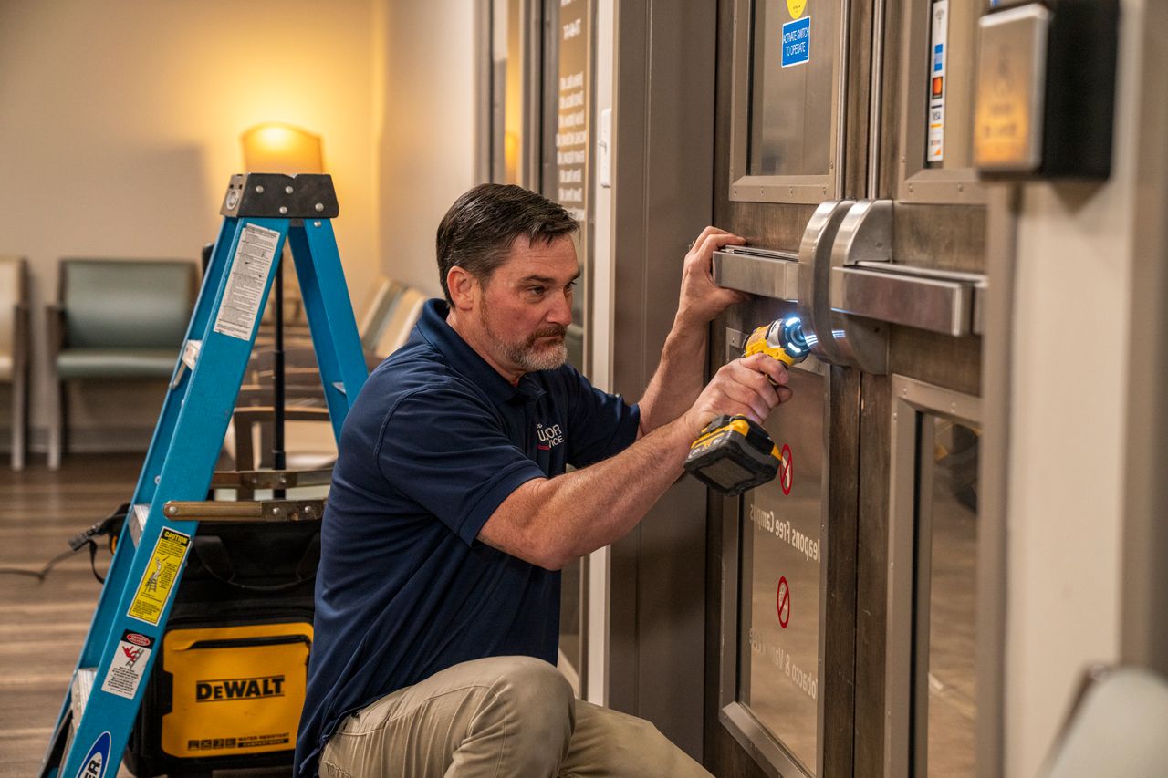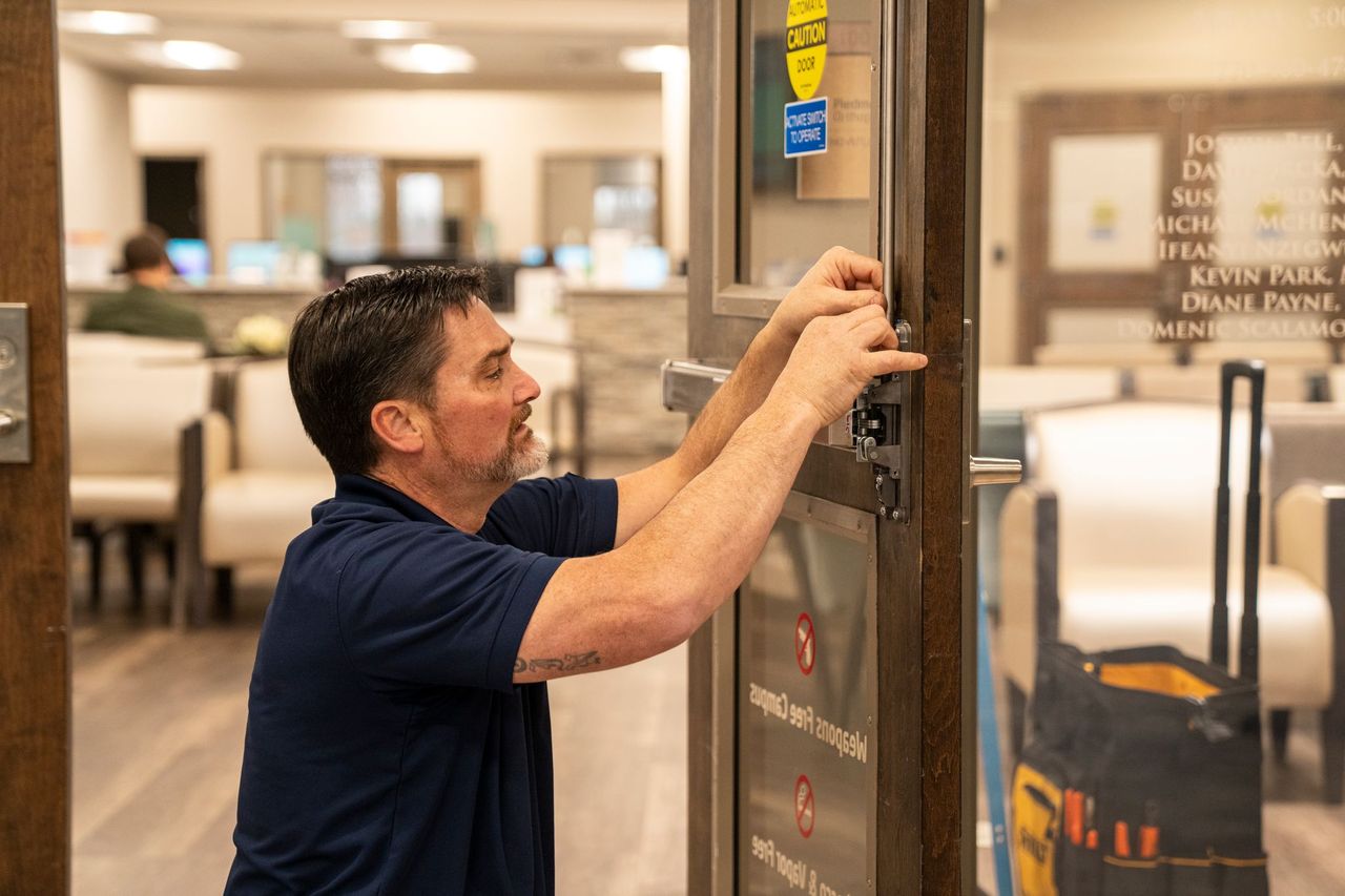 We provide comprehensive commercial door, glass, and access solutions, including emergency board-up and glass repair, emergency and automatic door repair, storefront and steel hollow core door repair and installation, commercial door frame repairs, weatherproofing and door sealing for pest prevention, and new commercial door installation. Our team also handles commercial door hardware and accessory installation, ADA door opener repair and installation, ADA compliance assessments and upgrades, drive-thru window repair and installation, security shutter installation, lock repair, replacement, and re-keying, master key and high-security lock systems, and keyless entry and access control system installation.